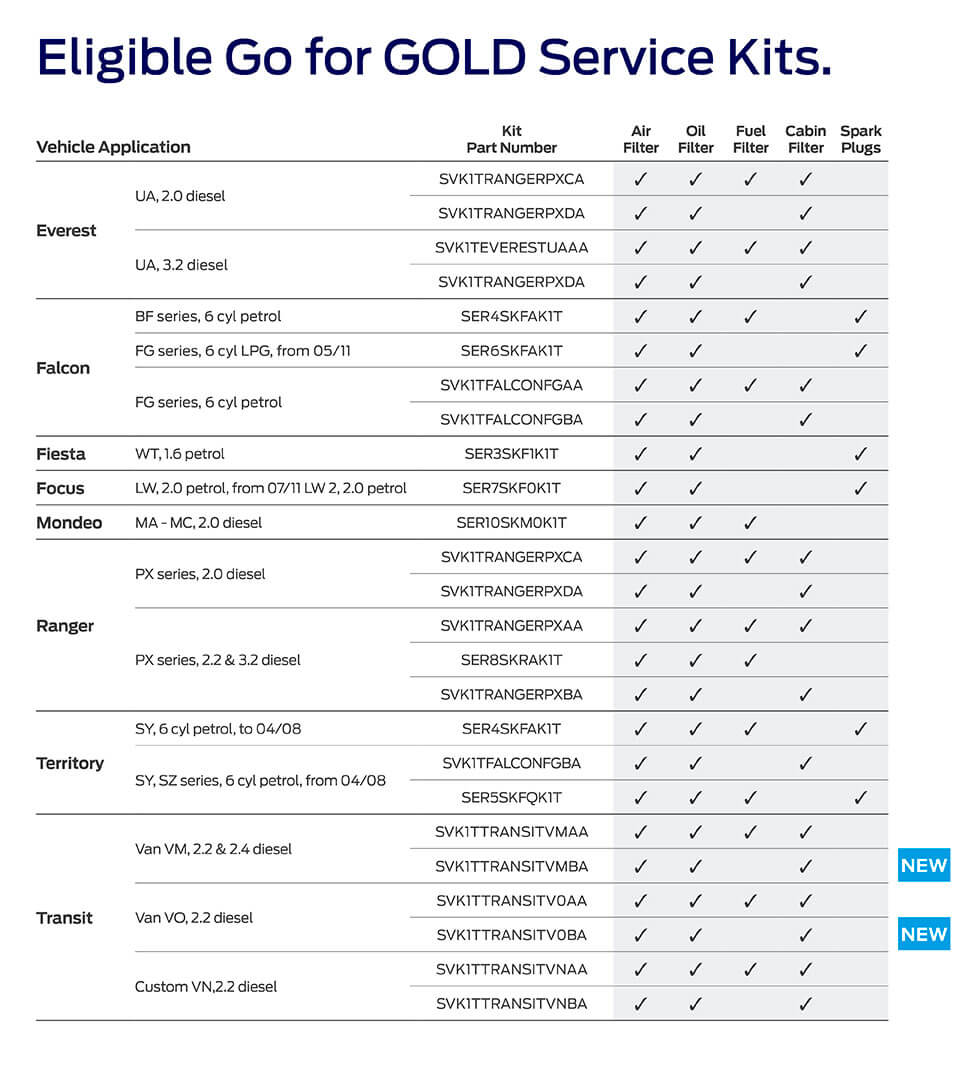 Buy any 5 Go for GOLD Service Kits in a single calendar